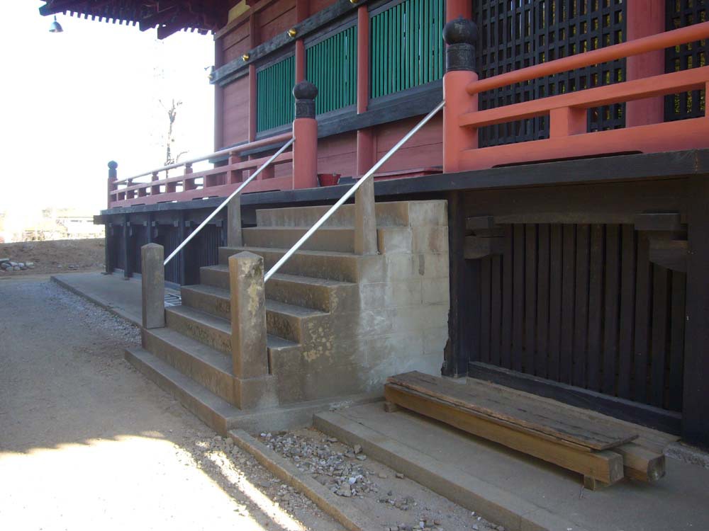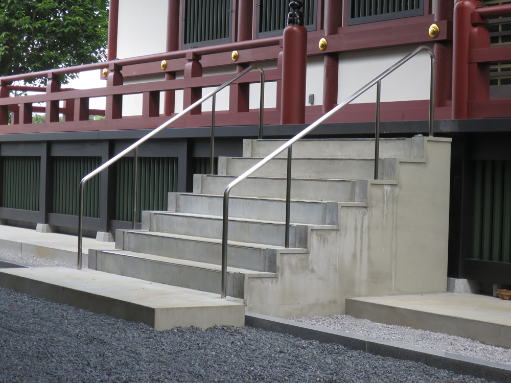 向拝土間を御影石貼りとし、沓石、雨落縁も新設