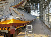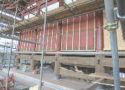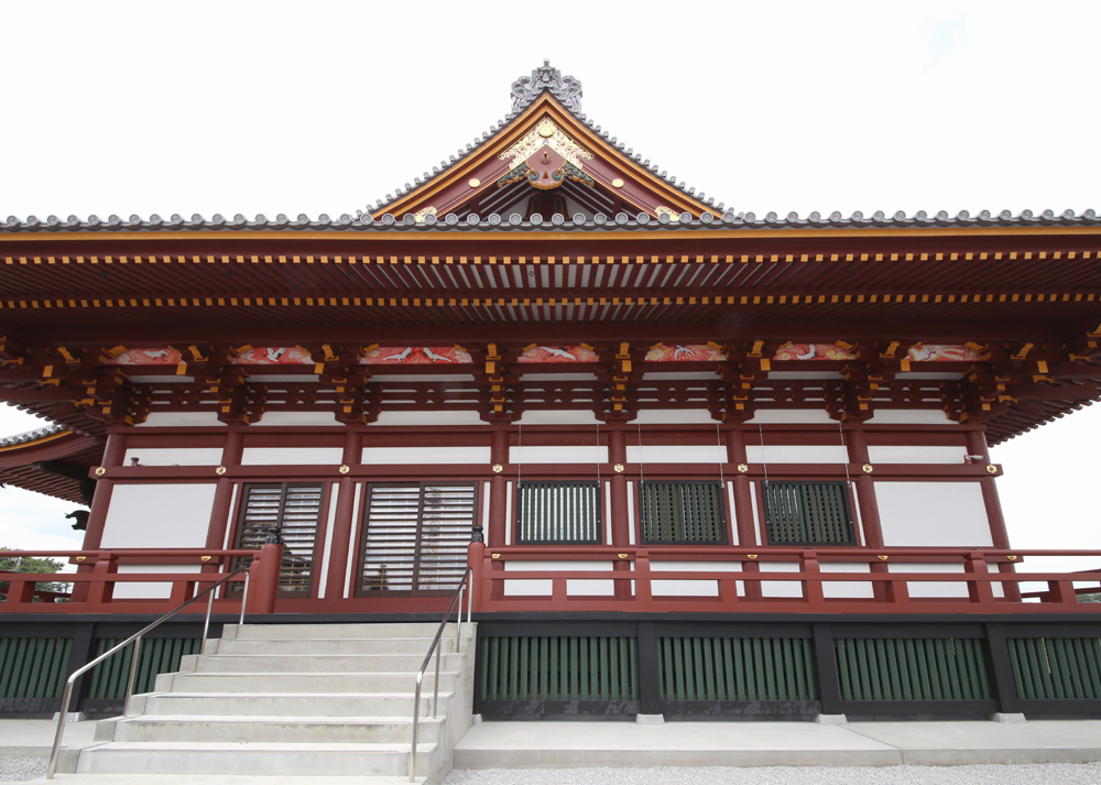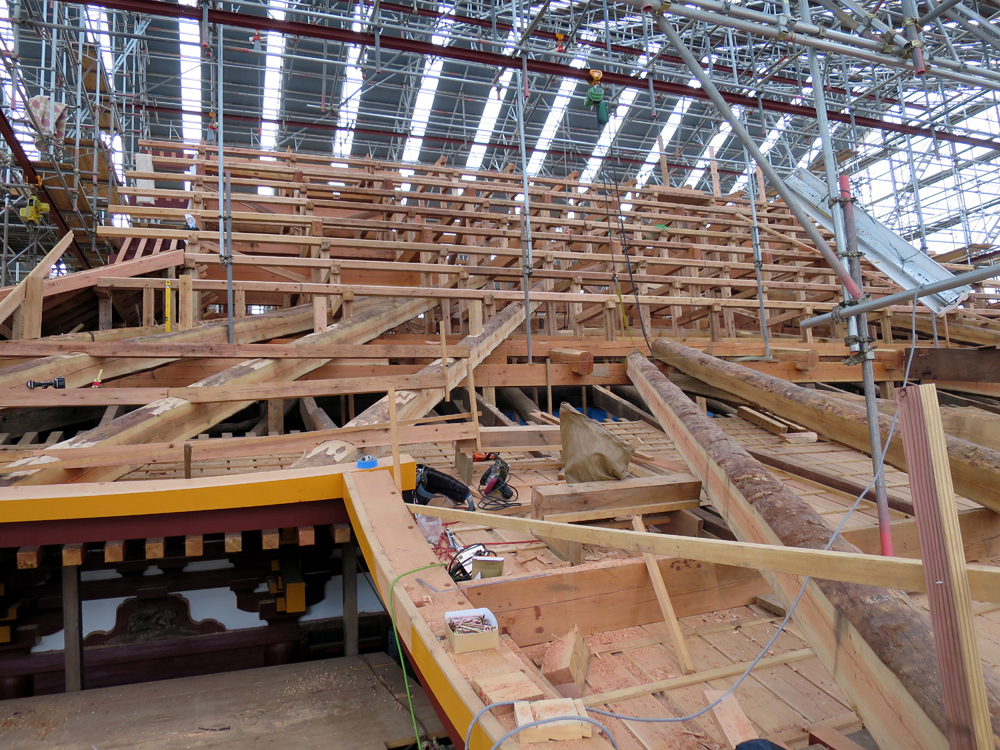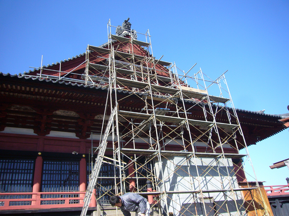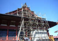 本堂内使用のため、本堂全体覆い屋根を鋼製足場で接地