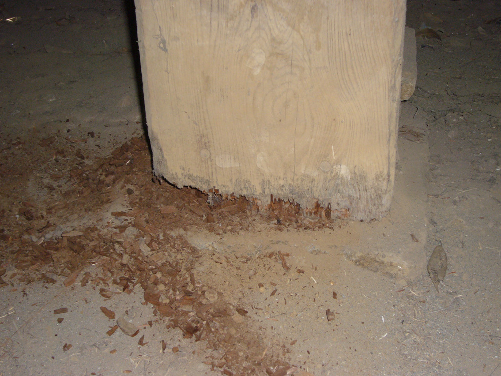 ◎柱脚部分腐朽箇所は根継し、ジャッキアップで不陸調整して出来るだけ床を水平にする事で柱の傾斜も改善させる。