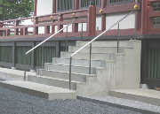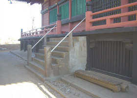 ◎濡れ縁は全面新規取替とし、高欄の意匠も一新する。正面階段段木も今回はムク材で新規取替とする。