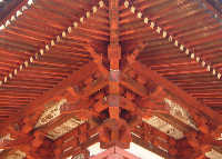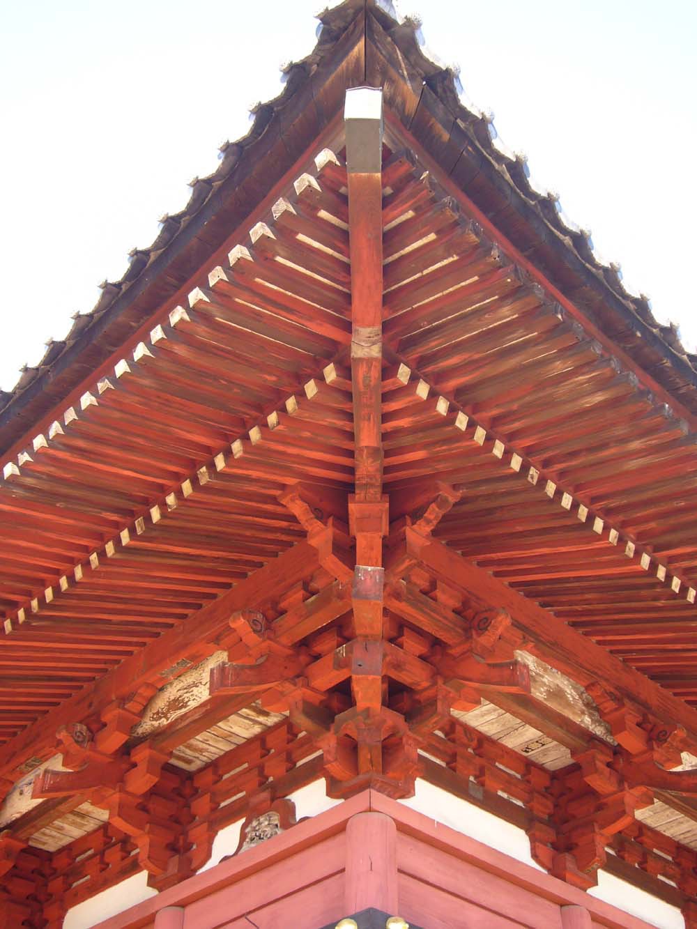 屋根勾配を七寸まで戻し、妻飾り部の意匠を一新。大梁より上部の小屋組を新設改修する。軒廻りは茅負、裏甲を取替え、化粧垂木も部分取替し、化粧隅木を元の位置まで持ち上げ、屋根意匠のバランスを安定させる。