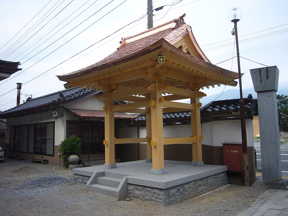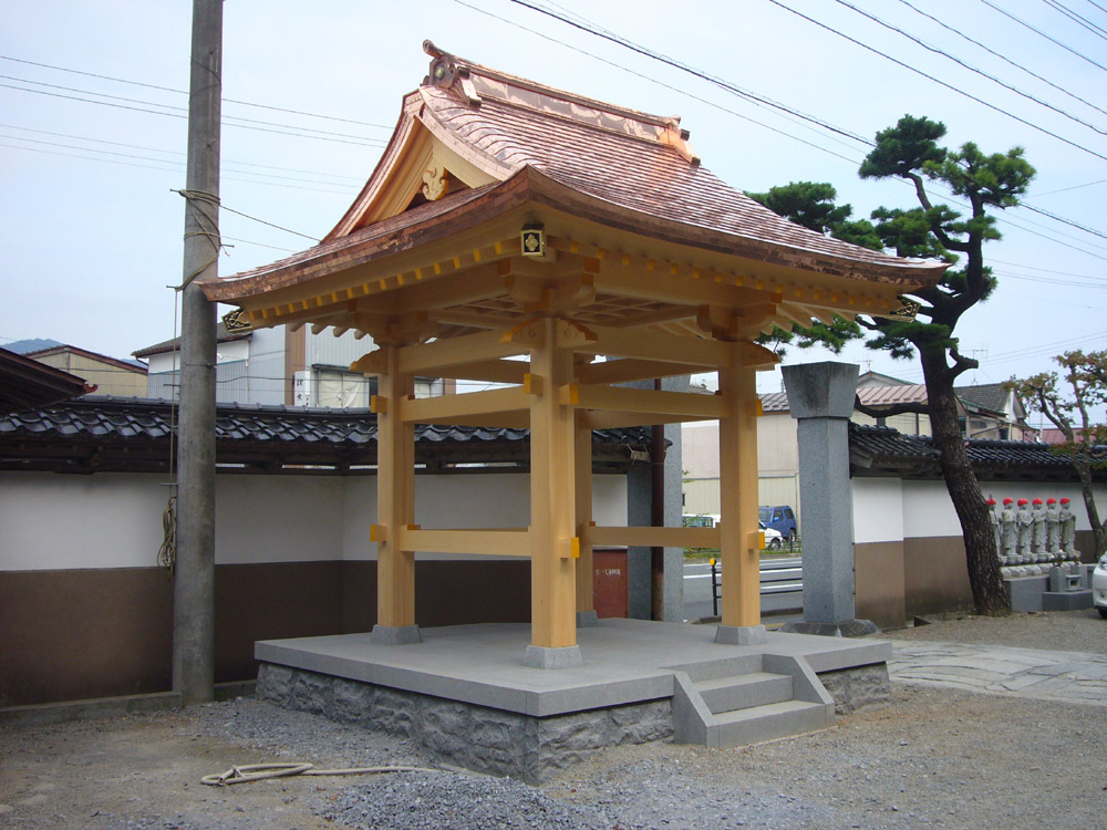 基壇、梵鐘工事を除いた本体部分は柱間7尺、入母屋、銅版葺で工事費500万円の予算でしたが、想像以上の出来栄えになりました。